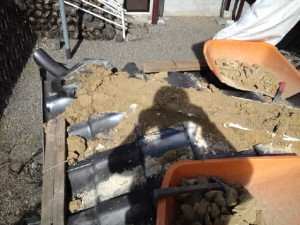 葺土を撤去し、モルタル系の葺土で隅棟を積み直します。