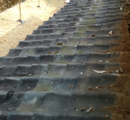 今日から屋根葺き替え工事に取りかかりました。 重たい葺土を撤去し、土葺瓦屋根から、引っ掛け桟工法の防災瓦屋根へ葺き替えます。